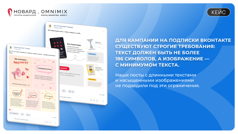 Когда Нельзяграм исчез из поля зрения российского бизнеса, многие компании оказались перед сложным выбором — либо искать новые площадки, либо рисковать потерять аудиторию. Группа компаний «Новард» тоже столкнулась с этим вызовом. Вопрос был не только в том, куда уйти, но и в том, как сохранить активное сообщество, когда привычные каналы закрыты. Мы в OMNIMIX приняли это испытание: перебросили сообщество ВКонтакте, адаптировали стратегии и уже к концу первого года достигли стабильного прироста в тысячу подписчиков в месяц. Рассказываем, как это получилось.