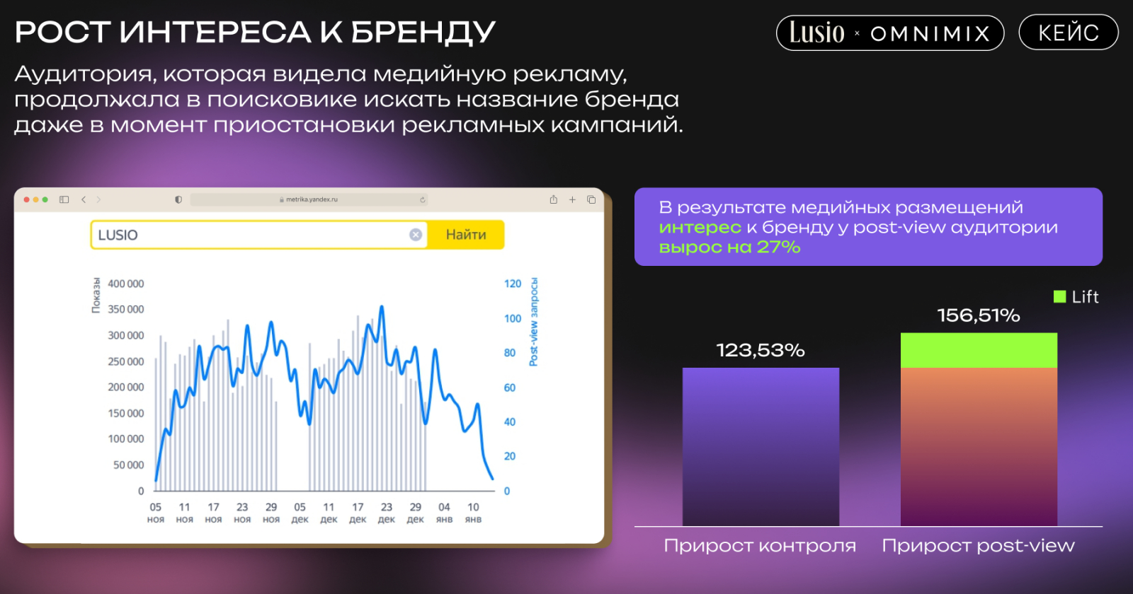 - В результате медийных размещений интерес к бренду у post-view аудитории вырос на 27%