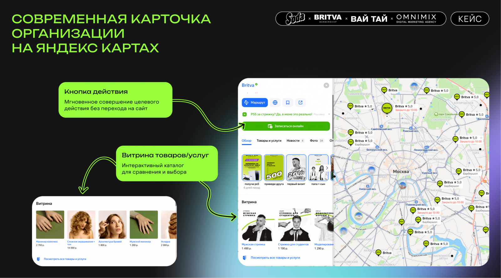 15 мая удар пришелся по сети барбершопов Britva. Из карточки одного филиала исчезла витрина услуг — элемент, который стабильно приносил 180 кликов в день от пользователей, заинтересованных в конкретных услугах.