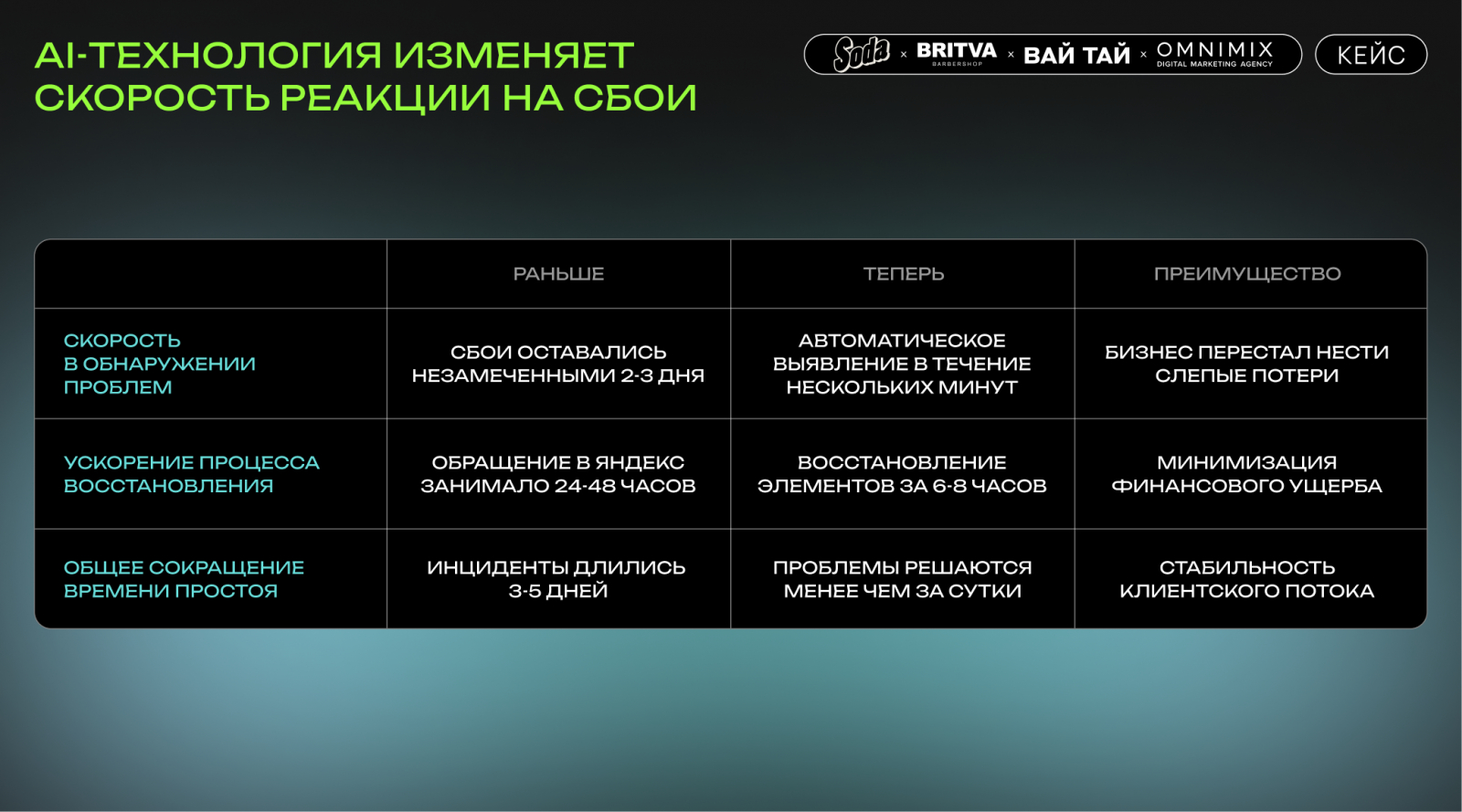 Внедрение AI-мониторинга позволило перейти от устранения последствий к предотвращению проблем. Это качественно новый уровень управления цифровым присутствием.