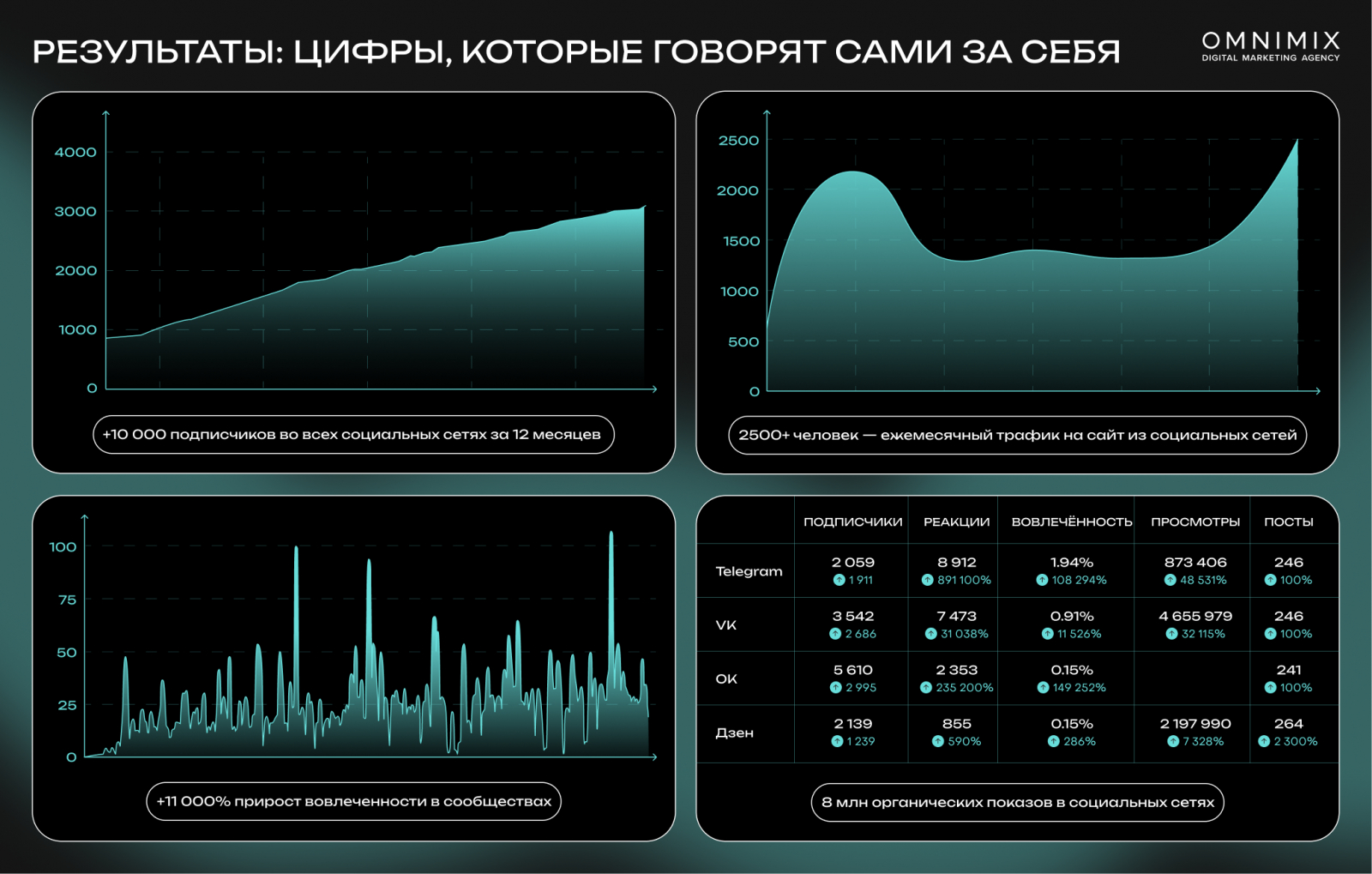 Команда OMNIMIX разработала комплексную стратегию цифрового присутствия, основанную на глубокой экспертизе и образовательном подходе. Мы запустили и оформили официальные сообщества в VK, Telegram и Одноклассниках, а также открыли каналы на Дзене, YouTube и RuTube.