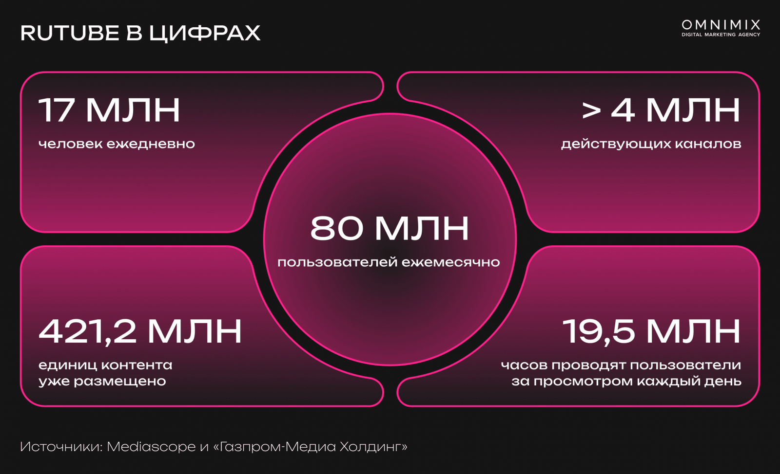 Аудитория сервиса постоянно растет. По данным РБК, средний показатель дневной аудитории национального видеохостинга Rutube с января по август 2025 года составил 17 млн человек, что в 3,2 раза выше показателя за аналогичный период 2024 года — 5,3 млн пользователей.