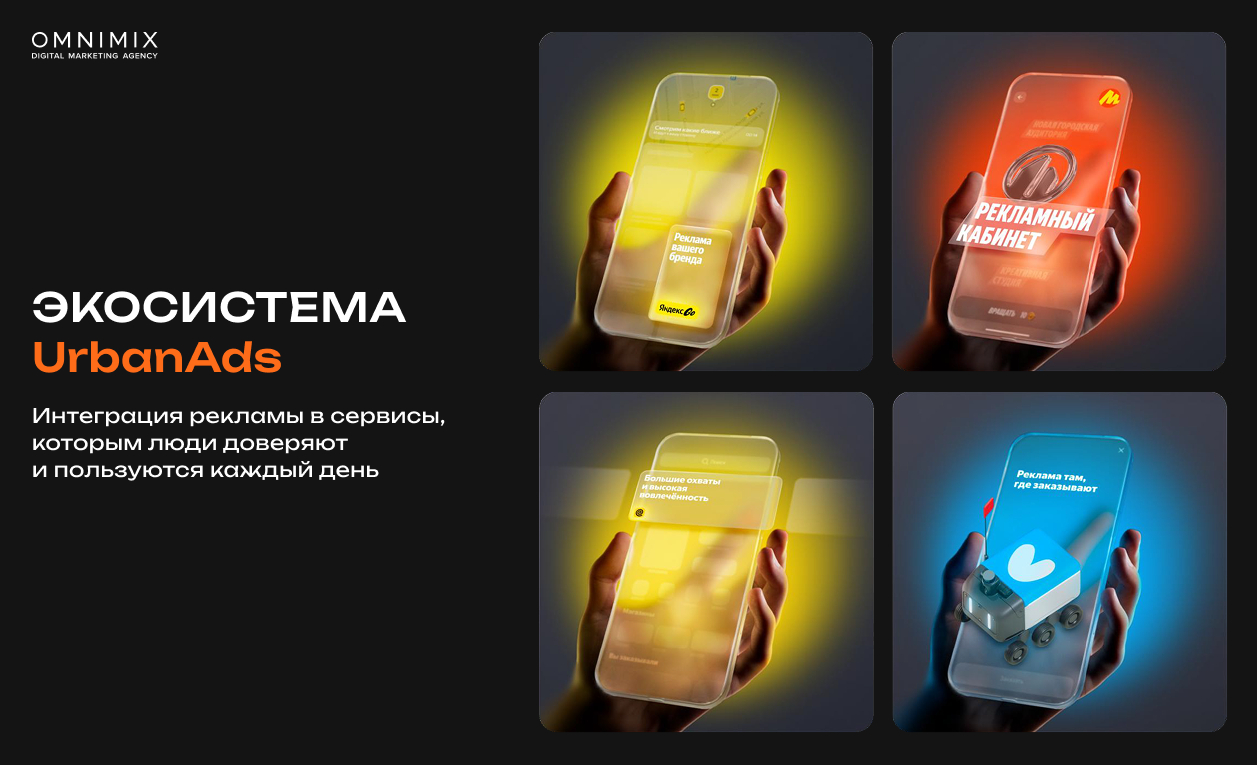 Роль рекламы в этой среде тоже меняется. Она перестаёт быть отдельным коммуникационным слоем и всё чаще встроена в контекст пользовательского опыта. Экосистема UrbanAds, объединяющая сервисы Яндекс, отражает эту логику: реклама появляется в реальных сценариях и работает в моменты, когда пользователь уже вовлечён в действие.
