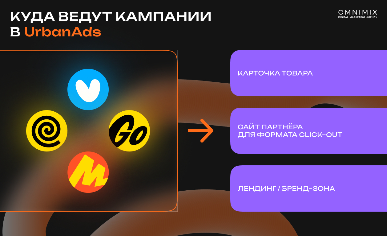 UrbanAds предлагает широкий набор рекламных форматов, адаптированных под специфику каждого сервиса. В тексте приведены лишь выборочные примеры — внутри сервисов доступно больше вариантов размещения, которые подбираются в зависимости от задач кампании.