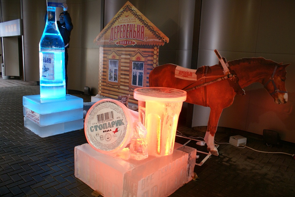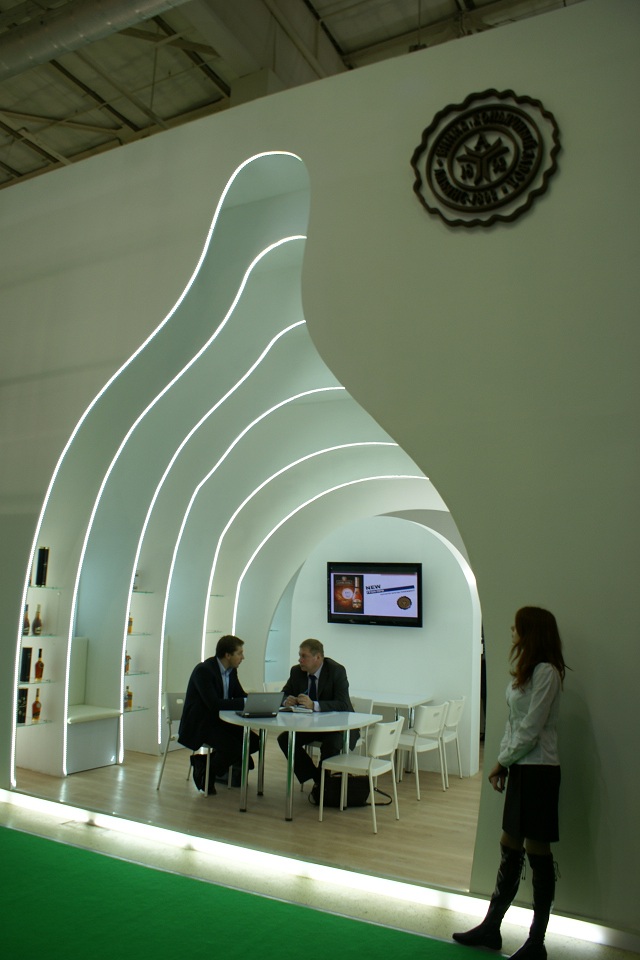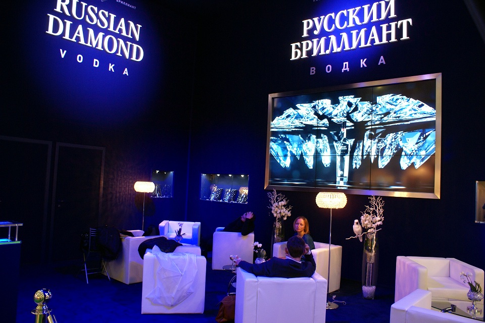 В основном все оформляли свои стенды не меняя их на протяжении 2-3 лет. Мне это показалось немного странным, особенно если стенд с немаленьким бюджетом, то почему бы не делать его каждый раз новым. Есть конечно категория компаний, которые пытаются делать стенд по минимальной цене, с мнимимальным креативом. Хотя конечно для крупных брендов, типа Главпродукта с медийными бюджетами, экономить на стендах раз в году не обязательно! Выложу фото только новых стендов. Те стенды которые были уже на прошлых выставках показывать не буду, несмотря на их бюджет и креативность. Начну с моего любимого алкогольного павильона, который всегда отличался бюджетными и креативными стендами, но не в этот раз. Отрасль реально переживает какой то кризис и видимо из-за ужесточения выдачи лицензий.