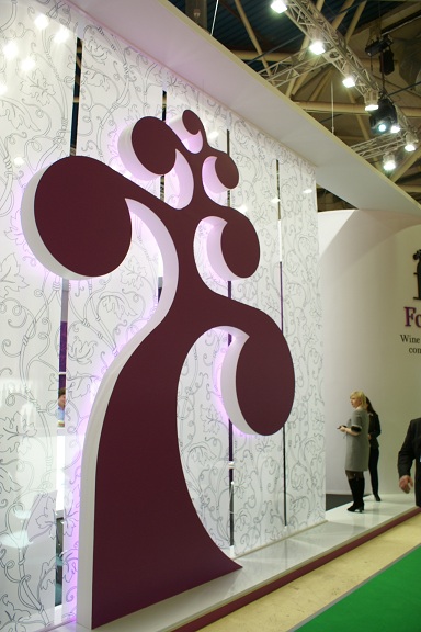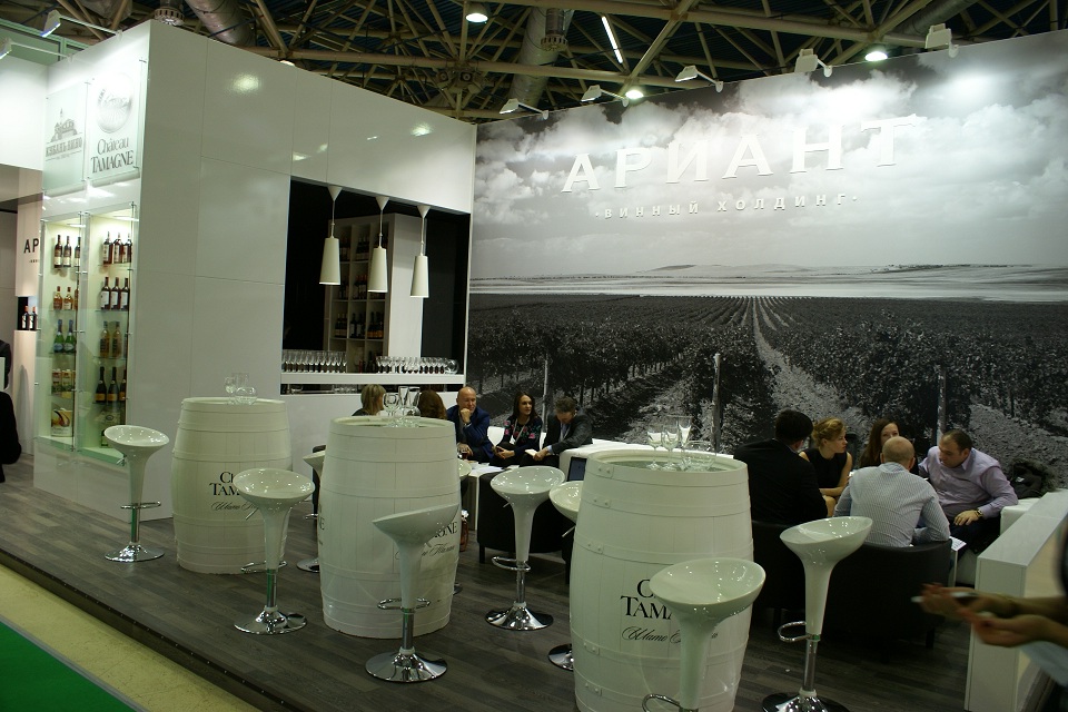 Винные стенды в этом году вообще очень интересные независимо от масштабов и бюджетов, вот очень стильный стенд, совсем в не большом бюджете.