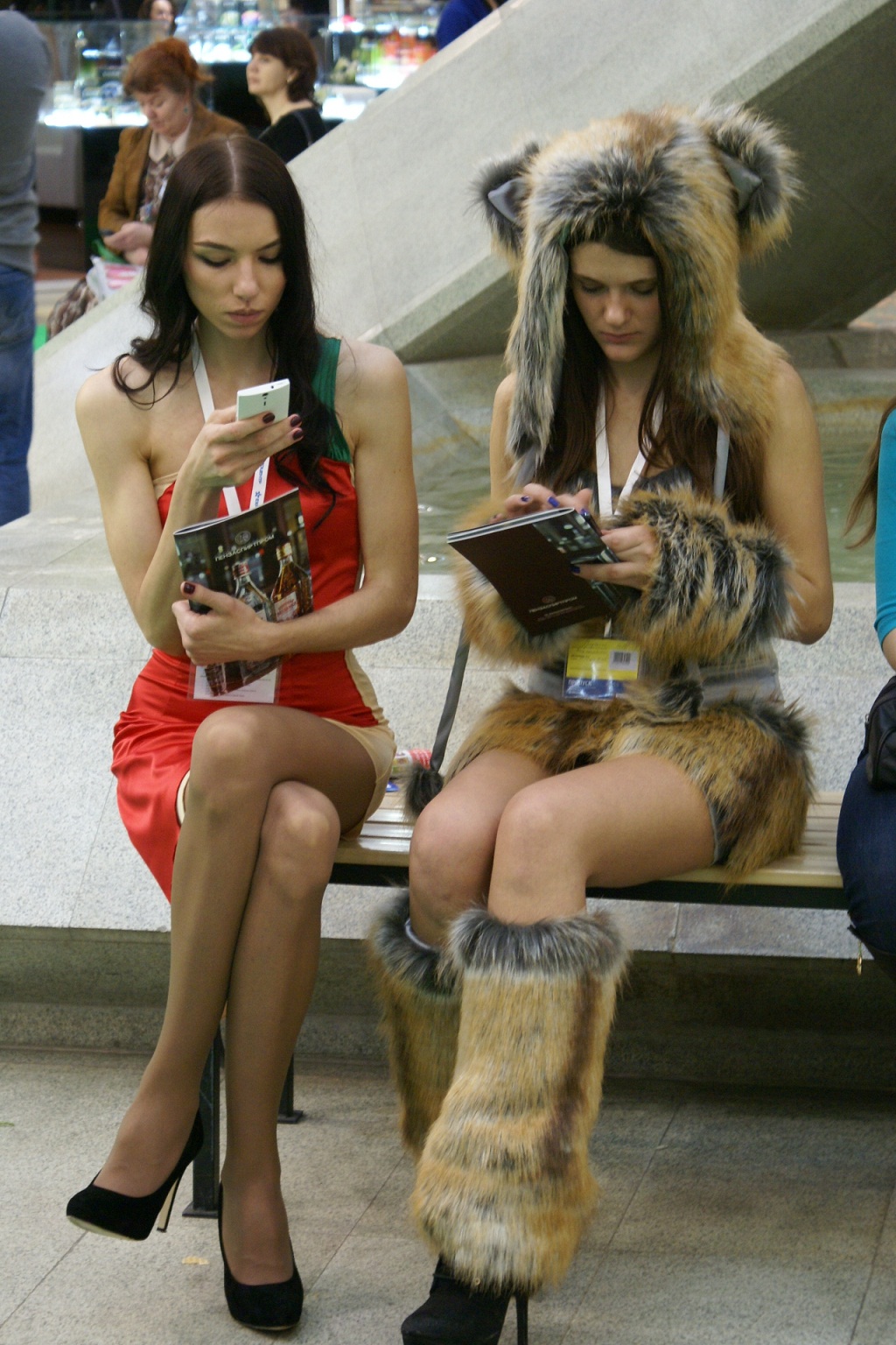 На выставке было много красивых девушек промоутеров в разных нарядах, правда застал я их видимо в минуту отдыха.