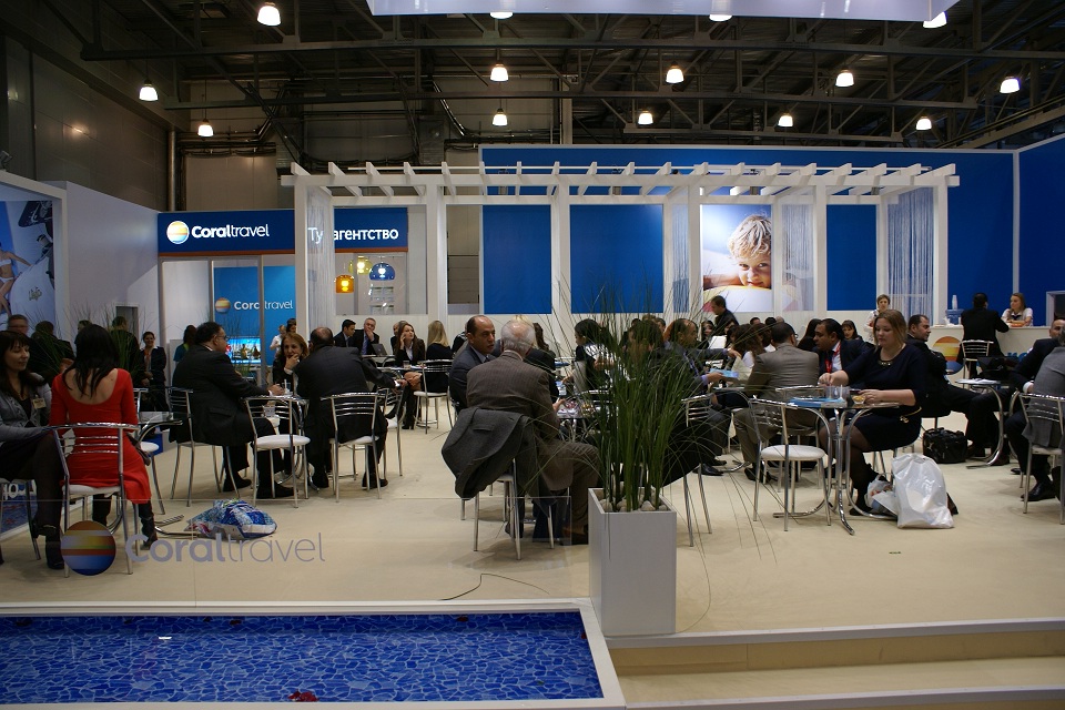 впечатленный этим залом, занятым одной компанией, пошел в другой зал. И тут... увидел тоже самое, только это был уже Corall Travel. Компания так же оформила весь павильон, с зонами по разным направлениям.
