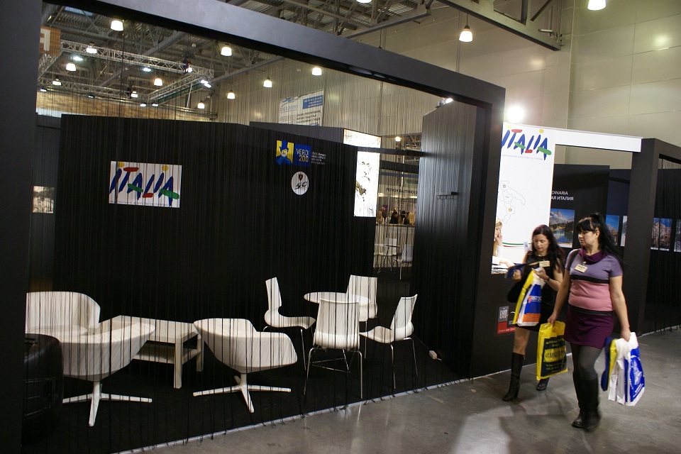 Италия, наверное, решила, что о них и так все все знают. Все их любят. И поедут в Италяию в любом случае. Поэтому не стали заморачиваться на стендах. Как и в одежде любовь к черному. На такой выставке совершенно не в тему.