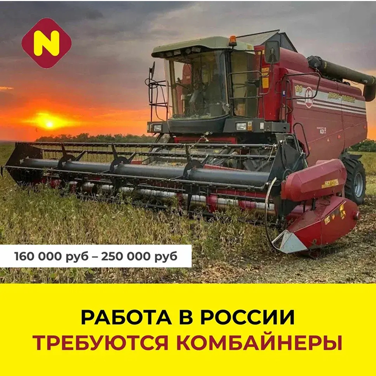Использовали честные фото из производства: люди, техника, логотип — это повышает доверие и считывается за секунду. Заголовки сделали утилитарными и крупными: «Требуются трактористы/комбайнёры/операторы», на контрастных плашках для максимальной видимости в ленте.