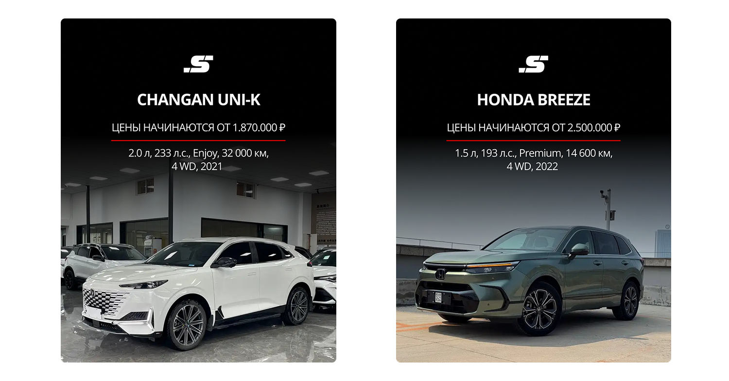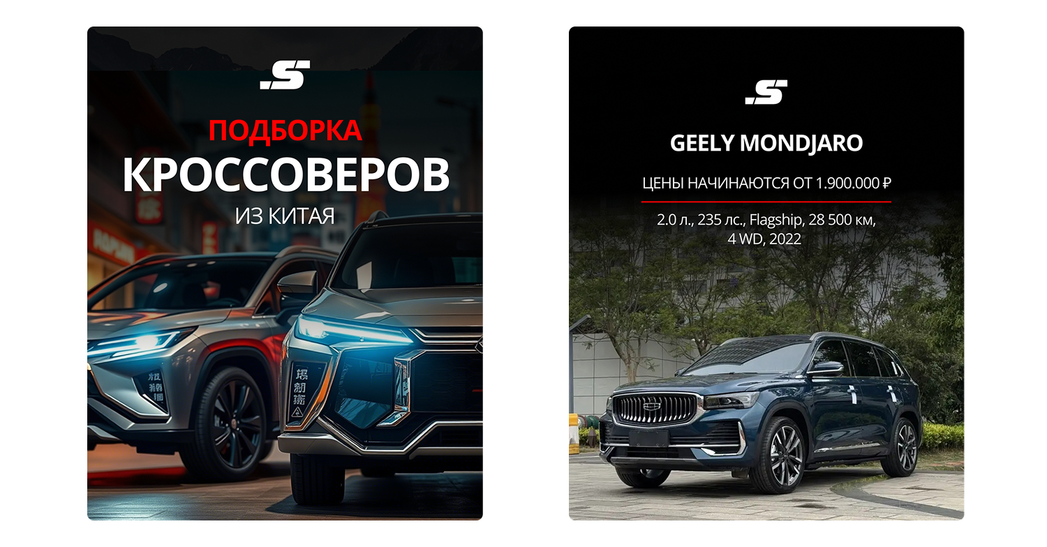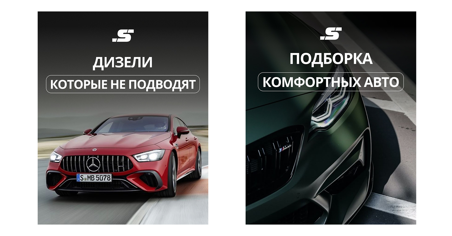 Серия построена так, чтобы за 2–3 секунды закрывать главные вопросы потенциального покупателя: что за машина, сколько стоит, в каком состоянии и насколько она «топовая». Поэтому в каждом посте сразу даём: цену «от», год, пробег, мощность, привод и уровень комплектации — только факты, влияющие на решение о покупке.