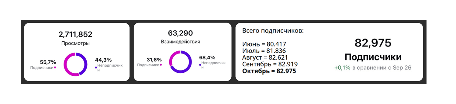 Благодаря продуманной SMM‑стратегии и понятной, честной коммуникации нам удалось резко повысить охваты и вовлечённость в соцсетях компании. Аудитория стала лучше понимать продукт, больше доверять бренду, активнее комментировать, задавать вопросы и в итоге чаще обращаться за подбором и заказом автомобилей. Этот кейс наглядно показывает, что грамотная стратегия в соцсетях — не «красивые посты», а реальный инструмент роста заявок и продаж.