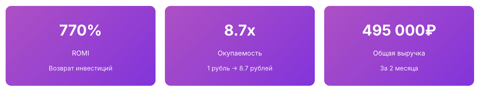 «Кампания показала, что даже с небольшим бюджетом и без обширной библиотеки реальных фото можно запустить эффективную рекламу в нише LPG массажа. Ключевые факторы успеха: точечный таргетинг на конкурентов, сильное ценовое предложение и эстетичные визуальные решения.»