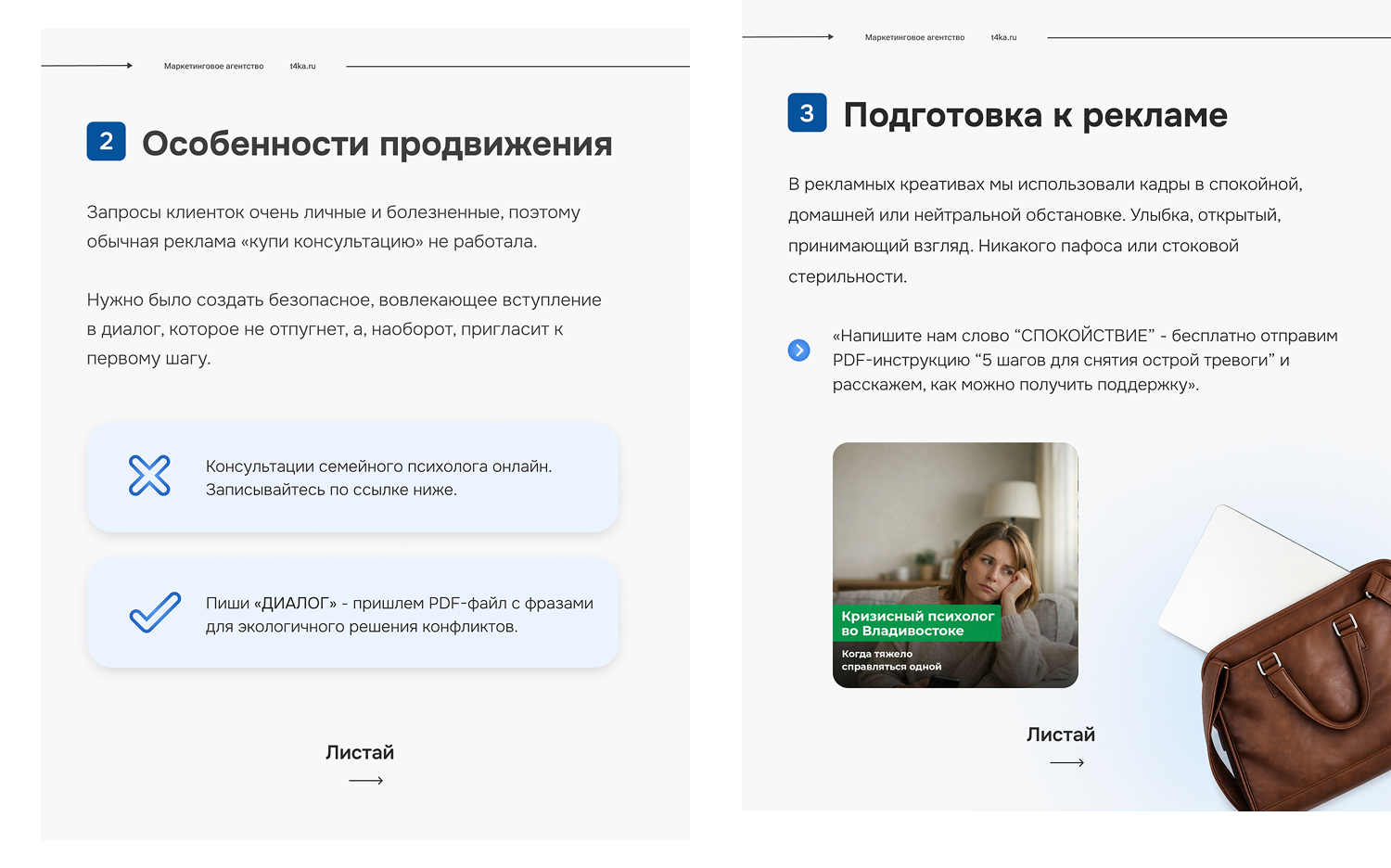 «Кампания подтвердила, что продвижение личных услуг строится не на агрессивных продажах, а на создании безопасного моста между болью клиента и помощью эксперта. Правильно подобранные слова, образ и первый шаг в виде микрополезности оказываются эффективнее любого прямого предложения о покупке»