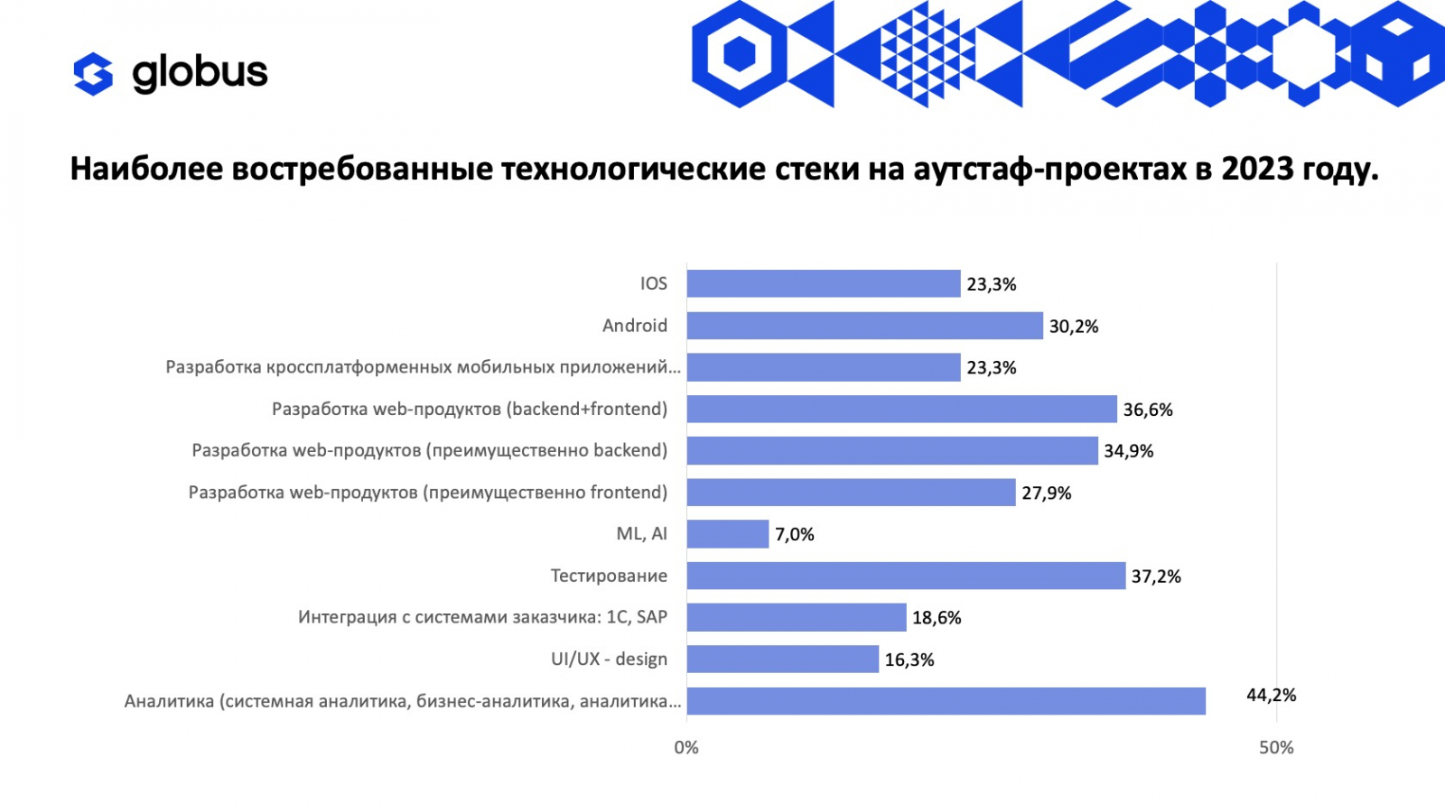 Наиболее востребованные технологические стеки на аутстаф-проектах в 2023 году