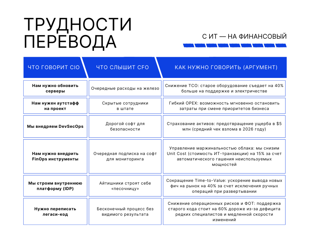 В разговоре с CFO важно оперировать не функциями, а конкретными бизнес-рычагами: