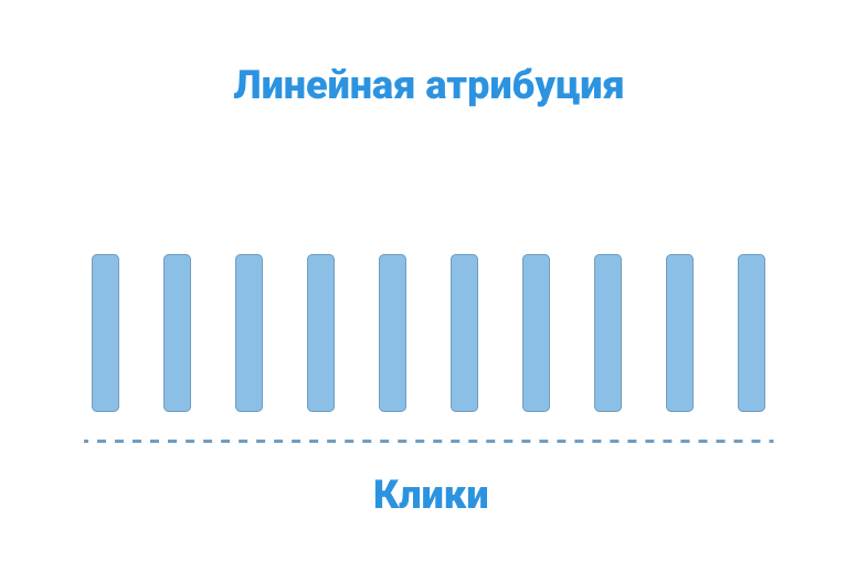 Ценность распределяется по всем точкам взаимодействия. Линейная модель кажется более справедливой, чем атрибуция по последнему и первому кликам, но остаётся спорной, потому что все каналы не могут быть одинаково эффективными.
