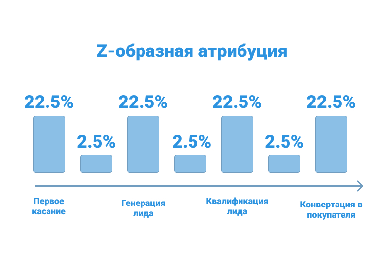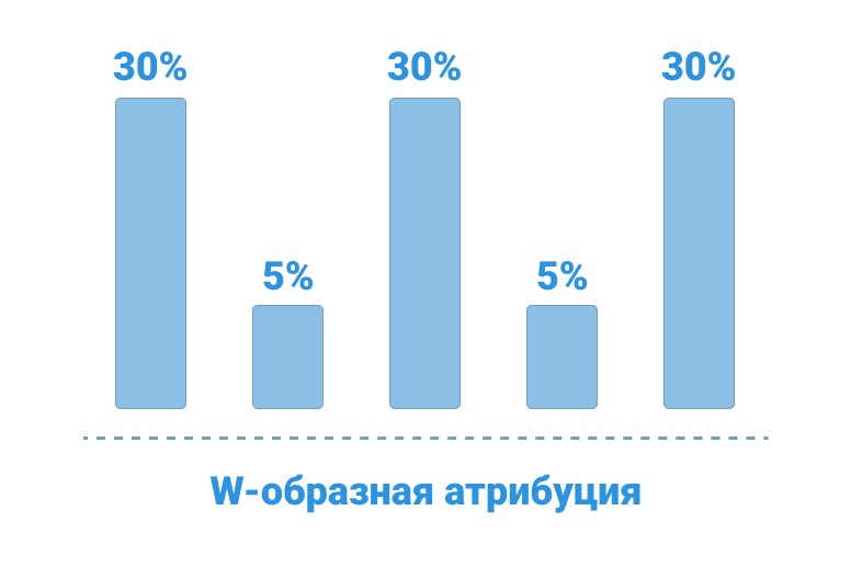 Эти точки получают по 30%, а остальные 10% распределяются между другими касаниями в воронке.