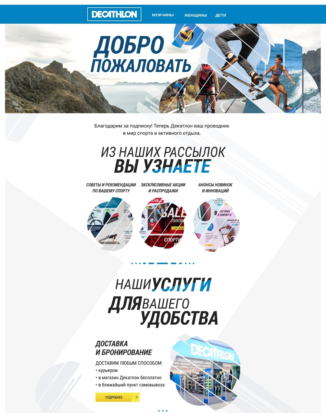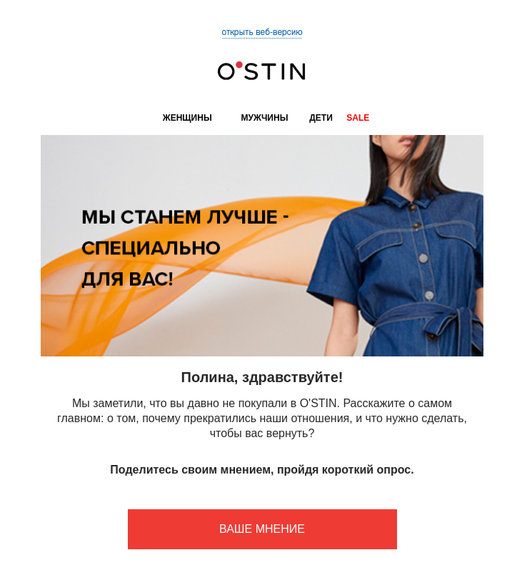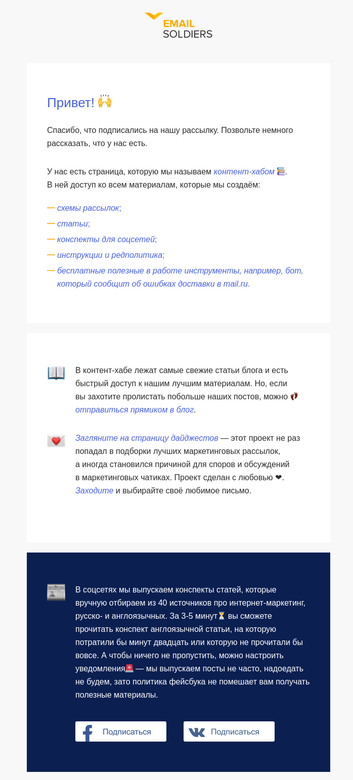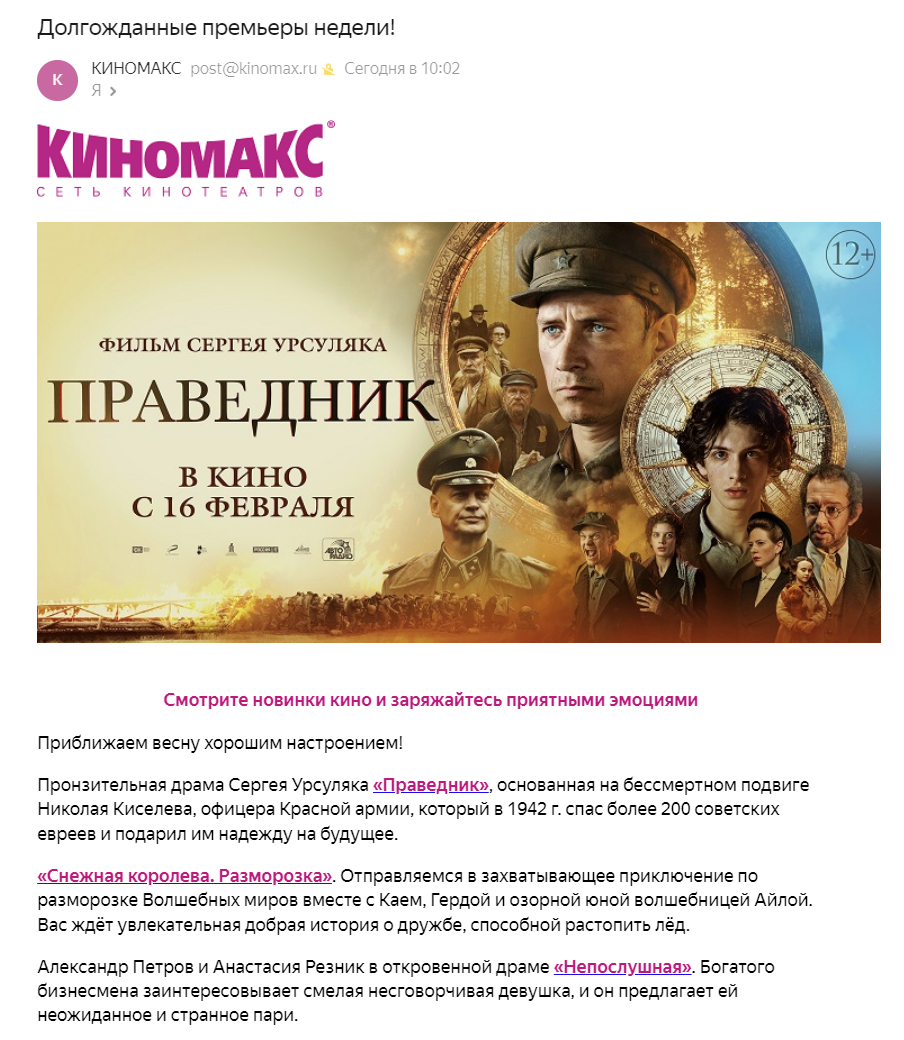 Расскажите в первом письме про ваш бренд. Но помните, что стартовое сообщение — это начало путешествия клиента вместе с компанией. Герой как бы попадает в ваш мир.