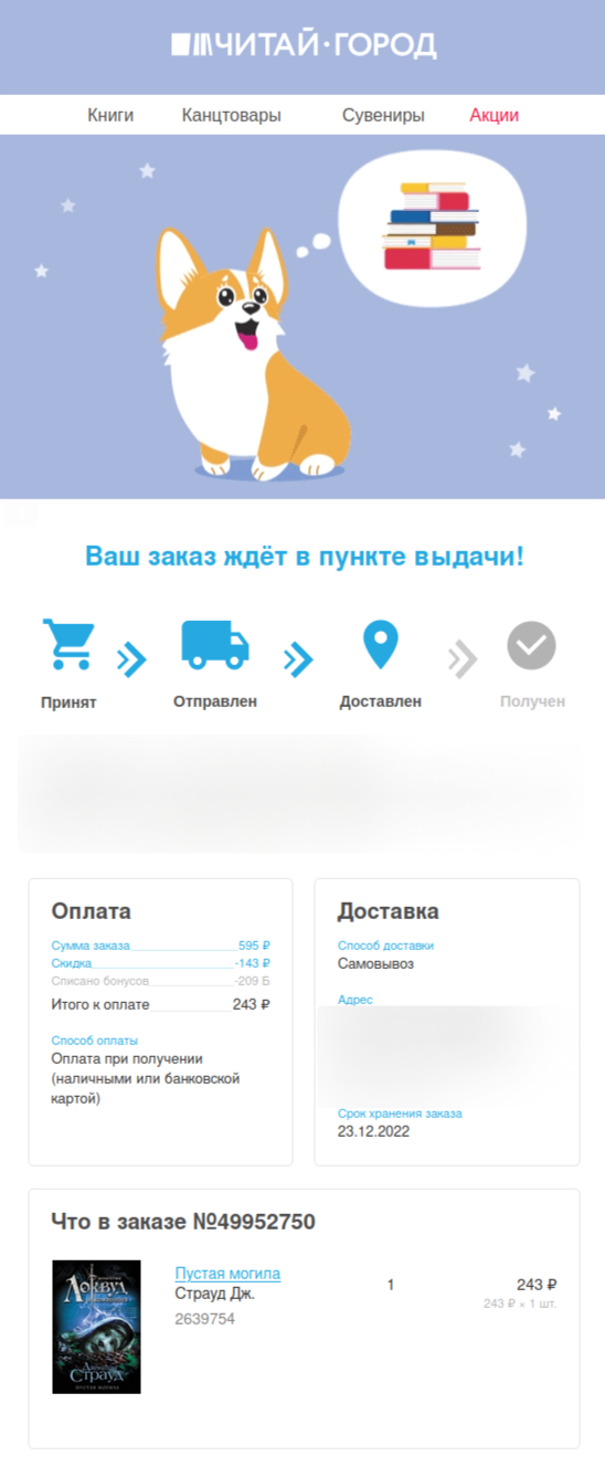 Письма с подтверждениями заказа и доставки включают детали о покупке. Также это возможность поблагодарить клиентов, поздравить с завершением пути. Ещё предотвратить сомнения покупателя в правильности выбора.