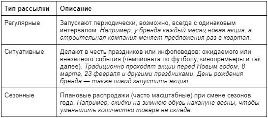 В статье расскажем, какие бывают рассылки про акции, как их создать и приведём примеры.
