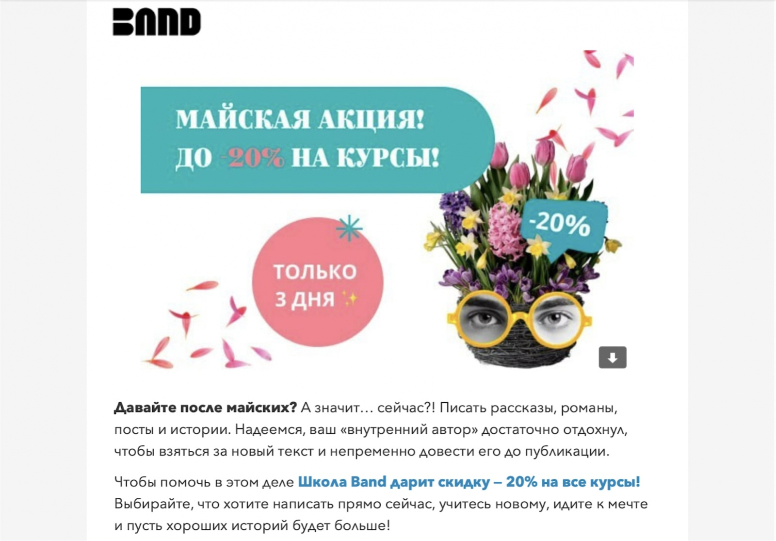 Клиенты любят скидки и часто подписываются на рассылки брендов, чтобы не пропустить выгодные предложения. Компании об этом знают и периодически устраивают акции, чтобы повысить продажи, привлечь внимание к новым товарам или реактивировать подписчиков.