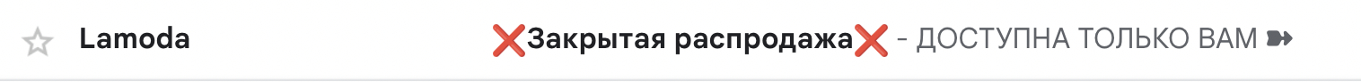 Закрытая распродажа от онлайн-магазина одежды, обуви и аксессуаров. Это персонализация предложения, когда бренд обещает снизить цену на покупки только тому клиенту, который получил письмо.