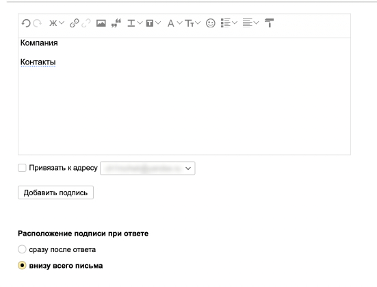 В раздел «Подпись» внесите нужные данные и сохраните изменения.