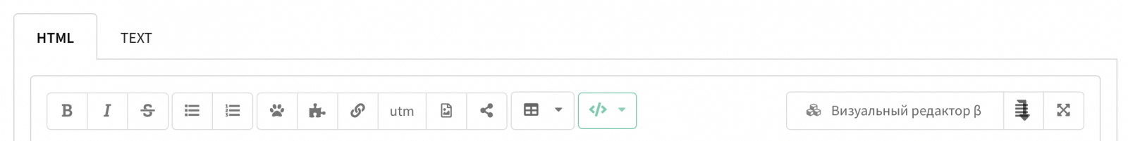 3. По умолчанию откроется HTML вариант письма. Перейдите в «Визуальный редактор» (кнопка справа вверху редактора).