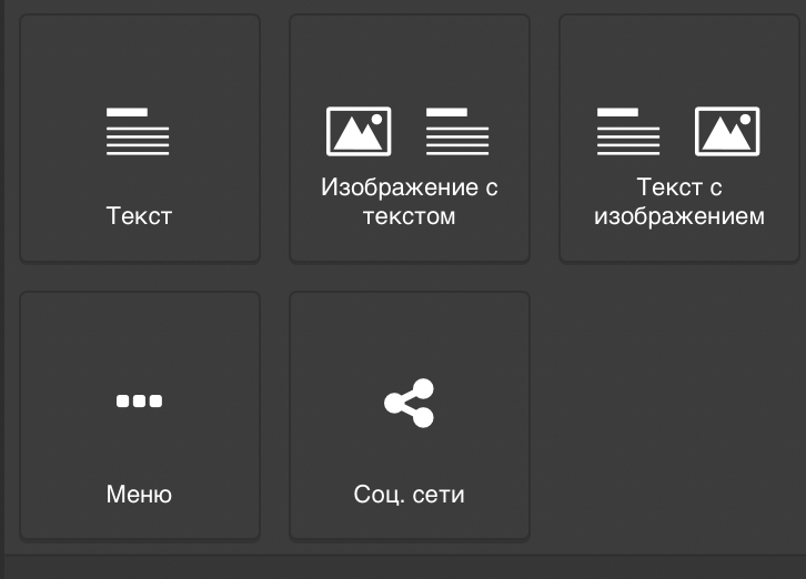4. В появившемся окне выберите подходящий блок (справа): текст, текст с изображением, ссылки на соцсети или меню.