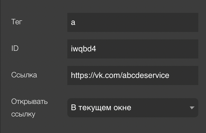 Ссылка на другой канал коммуникации добавляется в правом меню. Кликните на значок (например, ВКонтакте) и скопируйте сюда адрес вашей страницы или группы.