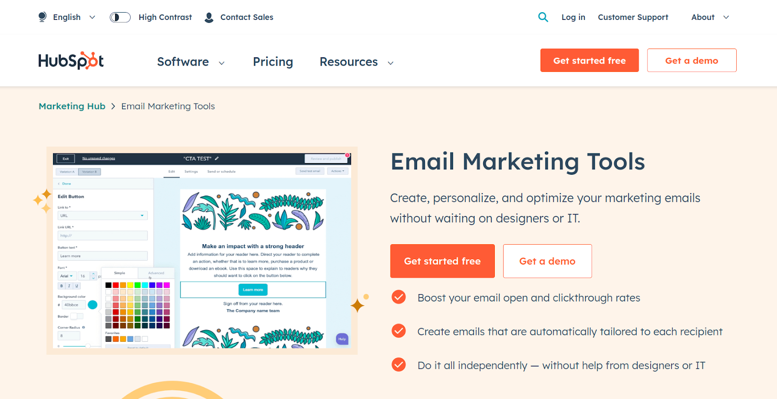 С помощью HubSpot маркетологи создают, настраивают и оптимизируют письма без навыков программирования или дизайна.