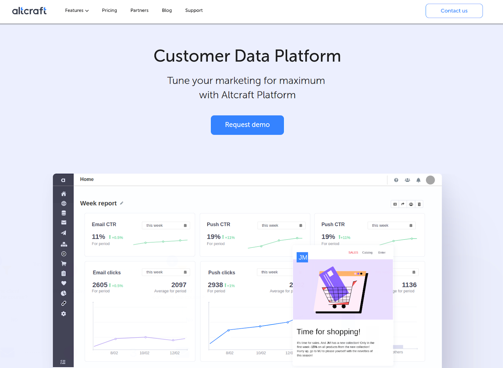 Altcraft Platform — это не только про email-рассылки. Платформа предоставляет различные инструменты для direct-маркетинга: готовые интеграции с различными сервисами, конструктор шаблонов сообщений, сценарии автоматизации рассылок любой сложности, настройка различных видов кампаний, формы и опросы, попапы и другое.
