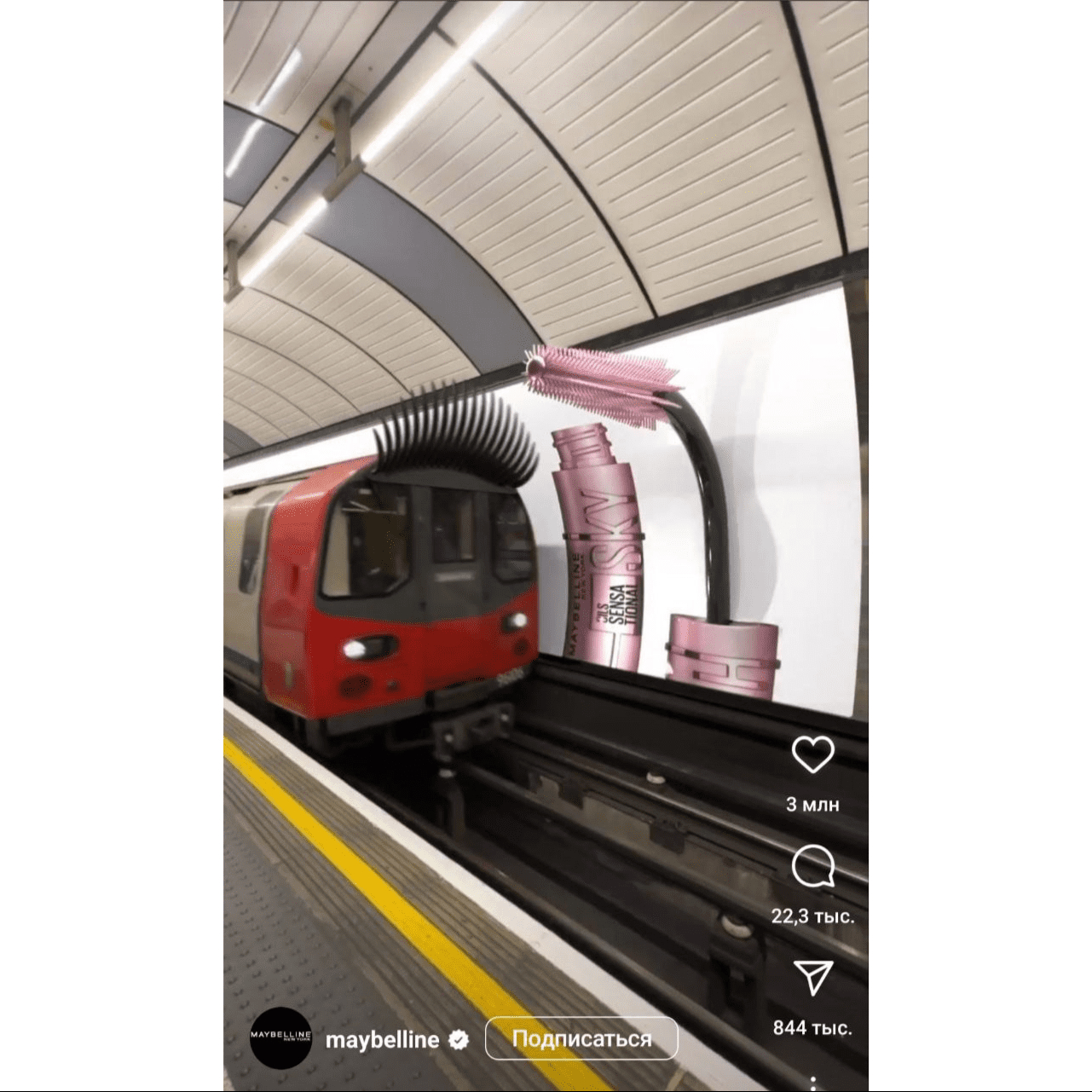 CGI рекламу туши для ресниц запустил бренд Maybelline. По улице Лондона проехал знаменитый двухэтажный красный автобус с ресничками, которые расчёсывает прикреплённая к зданию гигантская щётка. Также ресницы появились и у поезда метро.