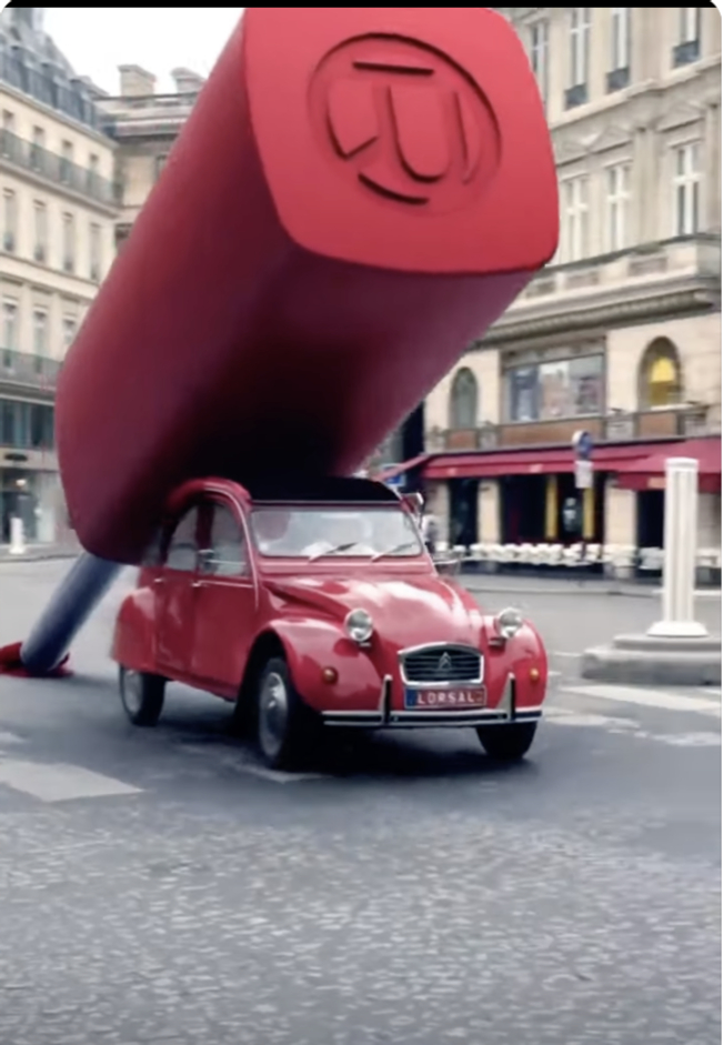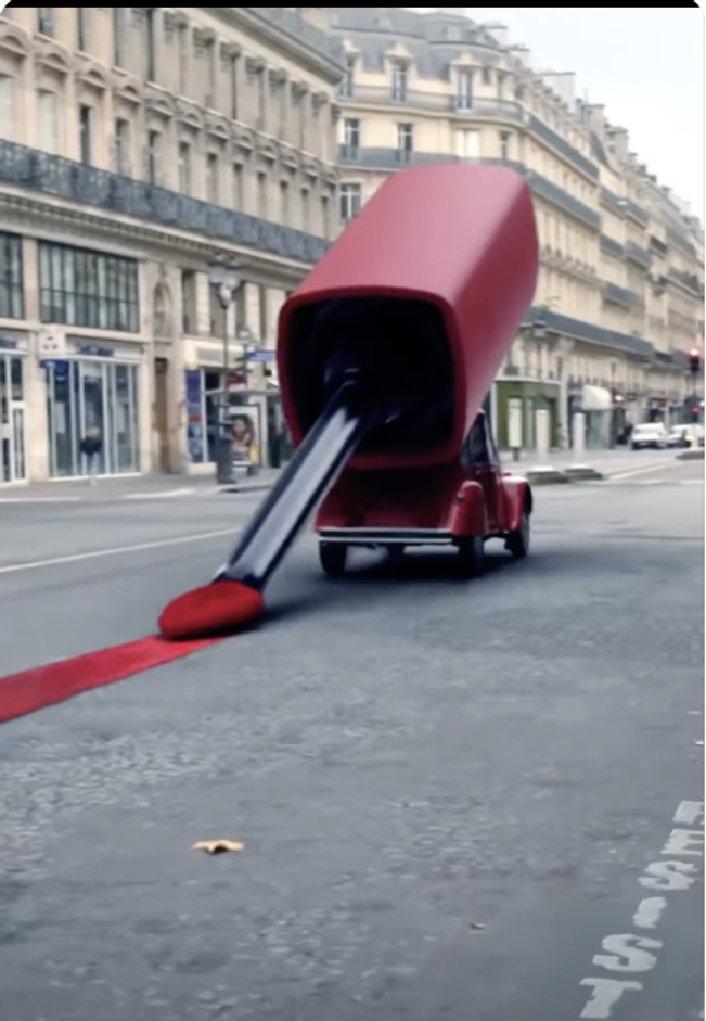 Ещё один известный косметический бренд нанёс дорожную разметку в Париже с помощью ретро автомобиля, который вёз на крыше красную помаду.