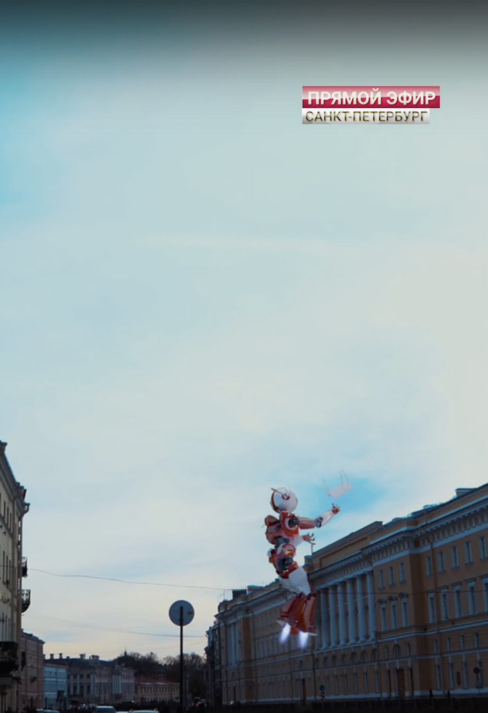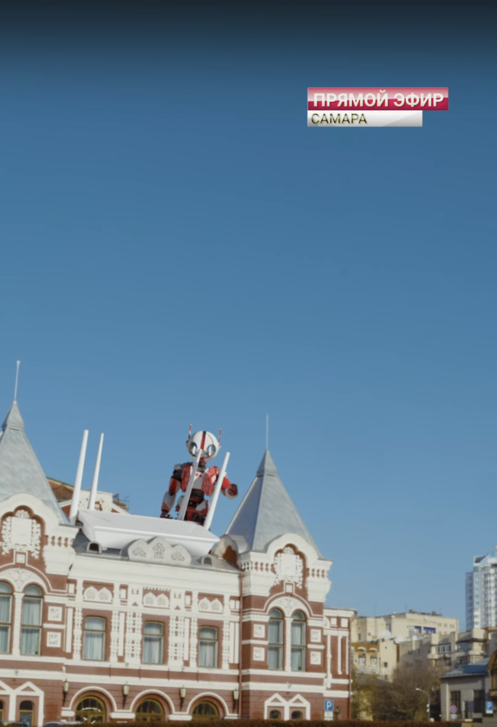 Гигантский робот летает по Самаре и другим городам и устанавливает роутеры на здания в рекламе интернет-провайдера. Причём по сюжету ролика идёт прямой эфир, что добавляет реалистичности видео, которое сделали благодаря CGI.