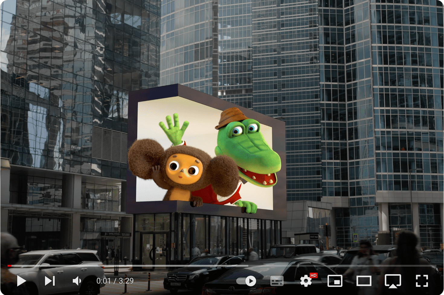 Благодаря компьютерной графике в роликах брендов появляются яркие персонажи и гигантские объекты на улицах реальных городов.