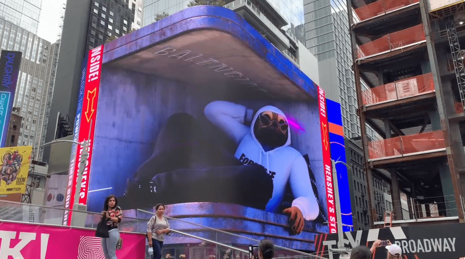Бренд Balenciaga в коллаборации с Fortnite создал цифровую коллекцию одежды. Моделями на трёхмерных билбордах стали персонажи онлайн-игры. Например, скин Догго в образе из одежды бренда.