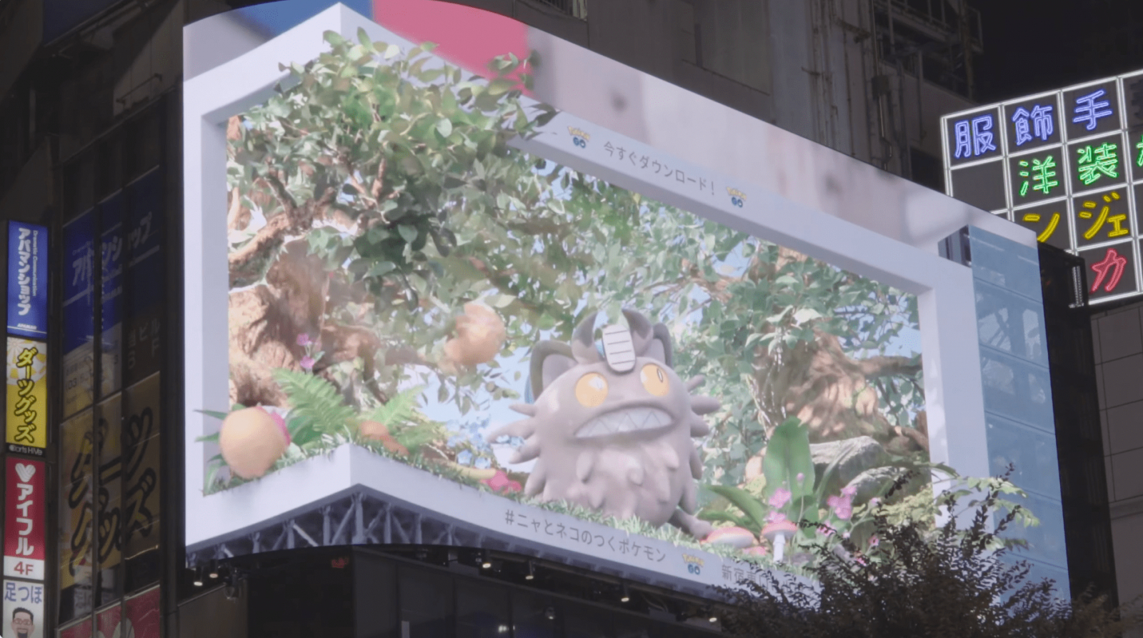 Реклама Pokemon Go также появилась на изогнутом экране площадью 154 кв. метров в Токио. Популярные персонажи игры появляются по очереди и разыгрывают какой-то короткий сюжет. Предметы как будто разлетаются за границы экрана.