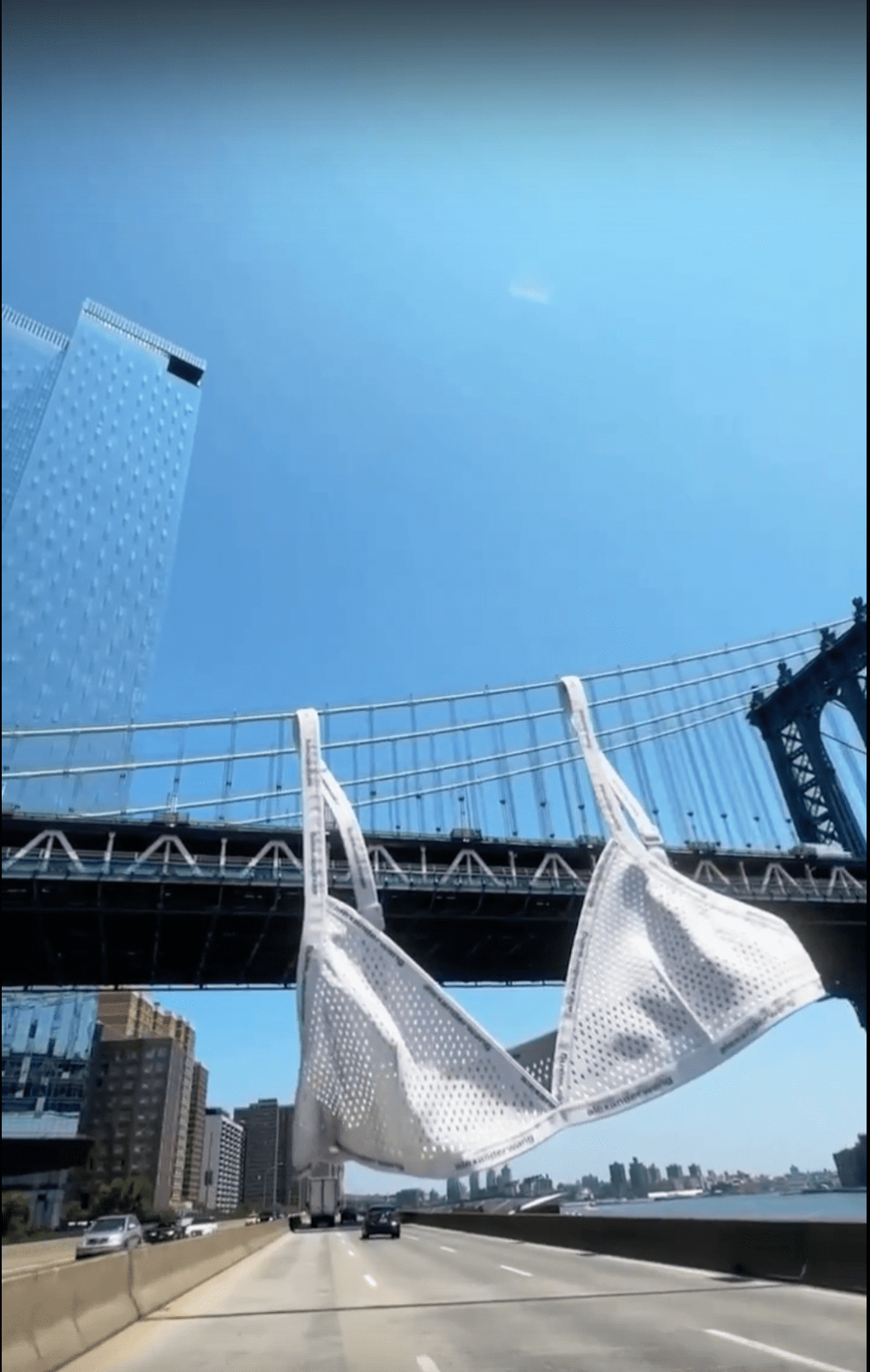 Очень реалистичным кажется видео с огромным бюстгальтером, который висит на мосту в Нью-Йорке. Но это снова CGI и реклама бренда Alexander Wang Underwear.