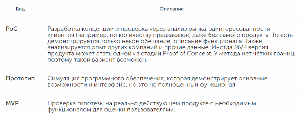 Понятия MVP продукта и Proof of Concept (подтверждение концепции) и прототипа связаны, но отличаются