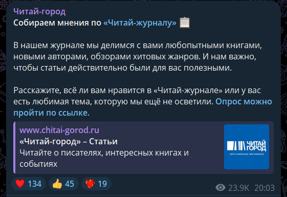 Подписывайтесь на наш телеграм-канал. Там вы найдёте актуальные новости в области digital-маркетинга, полезные статьи и интересные исследования. Будьте в теме вместе с нами :)