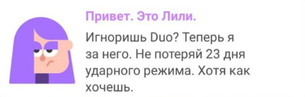 Мотивация. Можно отправить юзеру сообщение с призывом продолжить уроки («Вы не занимались испанским уже 5 дней») или вернуться к прослушиванию альбома.