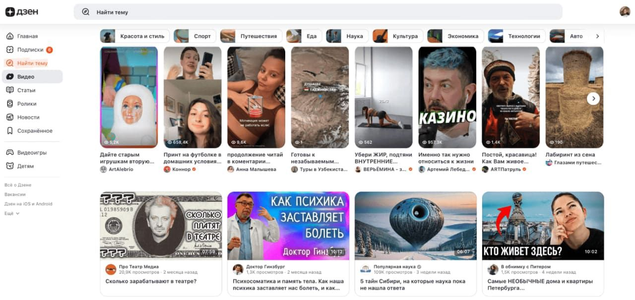 Ещё одна альтернатива ютуб — сервис видеоконтента от Дзена, который теперь принадлежит ВКонтакте. Изначально — это платформа для ведения блогов, на которой публикуются авторы, но сегодня на ней активно продвигаются и бренды. Однако здесь важно использовать именно нативный контент, а не прямую рекламу.