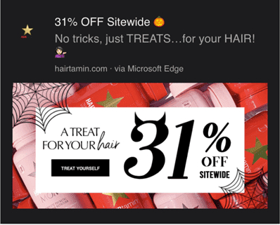Компания HAIRtamin провела рекламную кампанию с использованием Rich Push-уведомлений, идеально вписавшуюся в тематику Хэллоуина.