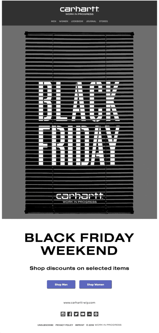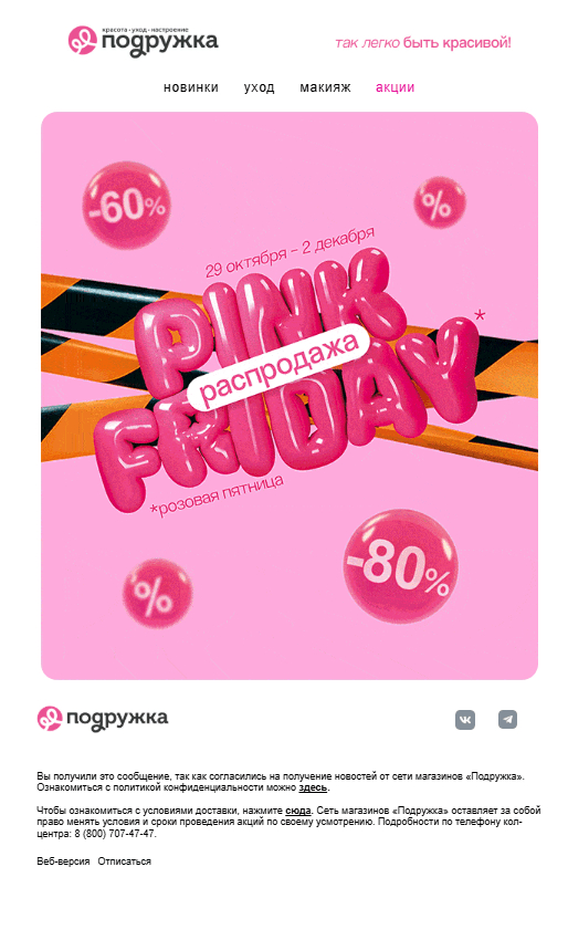 Обратите особое внимание на оформление сообщений в Черную Пятницу. Воплощайте самые яркие, креативные и смелые задумки. Вот несколько примеров, которые точно не оставят равнодушными пользователей.