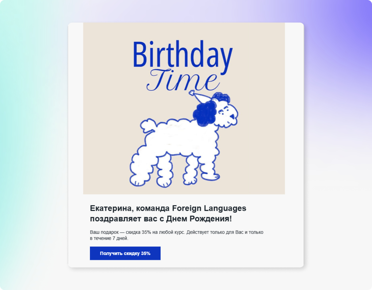 Персонализированные рассылки. Altcraft CDP использует сведения о клиентах для персонализации сообщений, поэтому каждый пользователь может получить персональное предложение или уникальный промокод. Контент автоматически адаптируется под интересы конкретного клиента, повышая вовлеченность и конверсию.