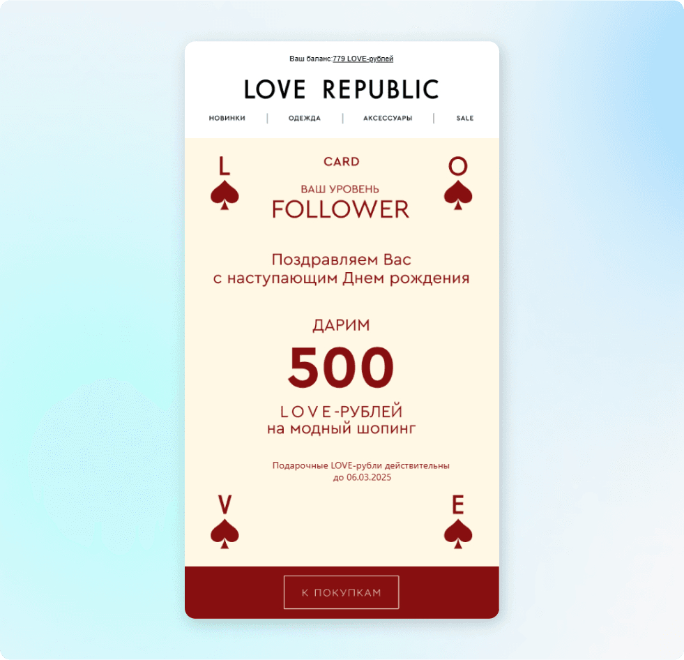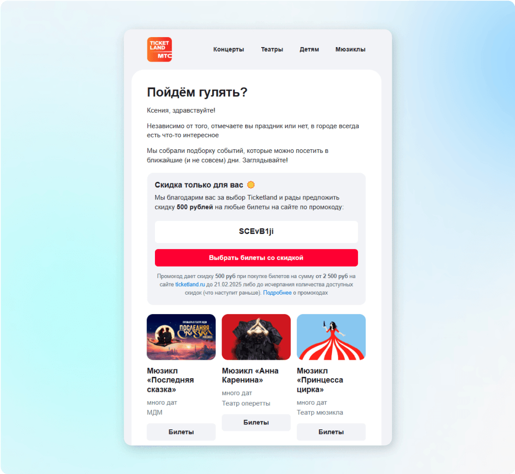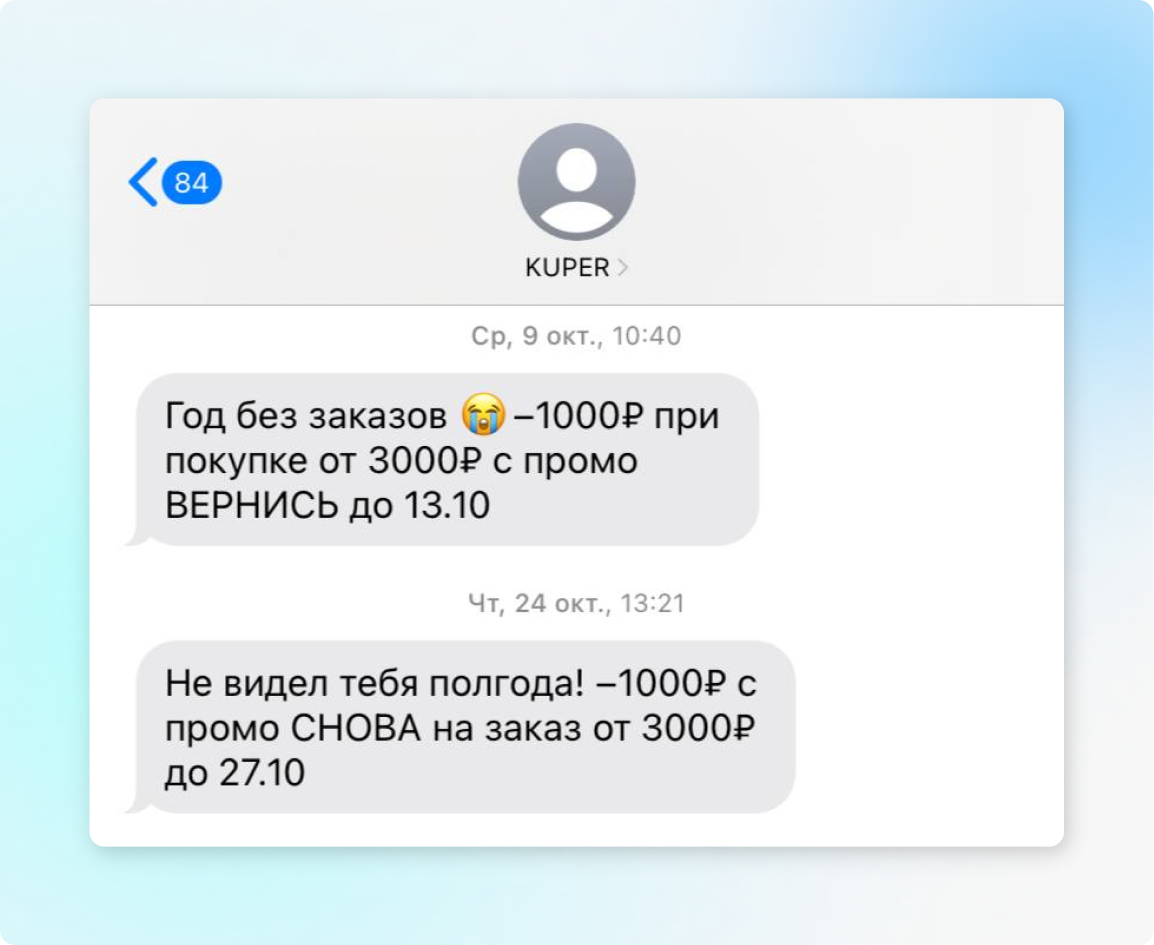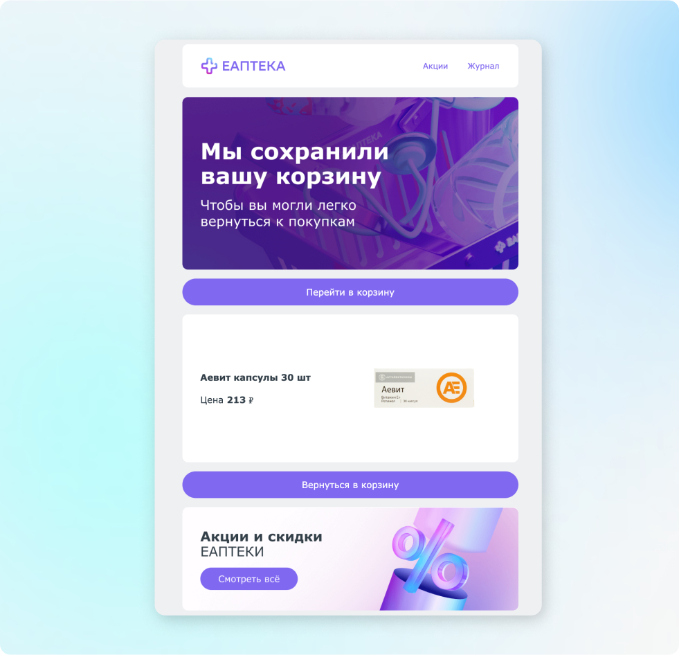 Основная цель реактивационных писем — вернуть прежний интерес пользователя. Они срабатывают, когда клиент перестаёт проявлять активность. Например, несколько месяцев не заходит на сайт или не открывает письма от вашего бренда.