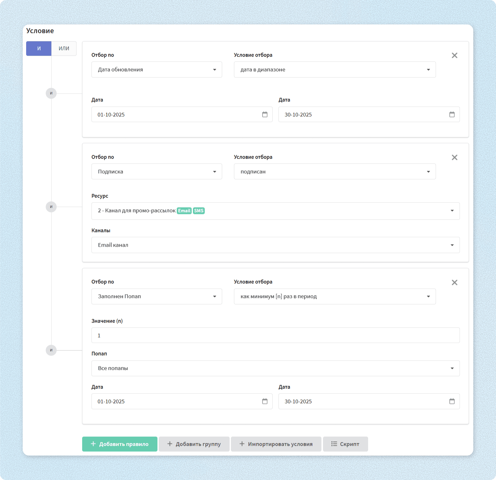 CDP получает эти сигналы, обновляет клиентский профиль и запускает нужное действие. Например, пересобирает сегмент, добавляет клиента в сценарий или отправляет сообщение в выбранном канале.