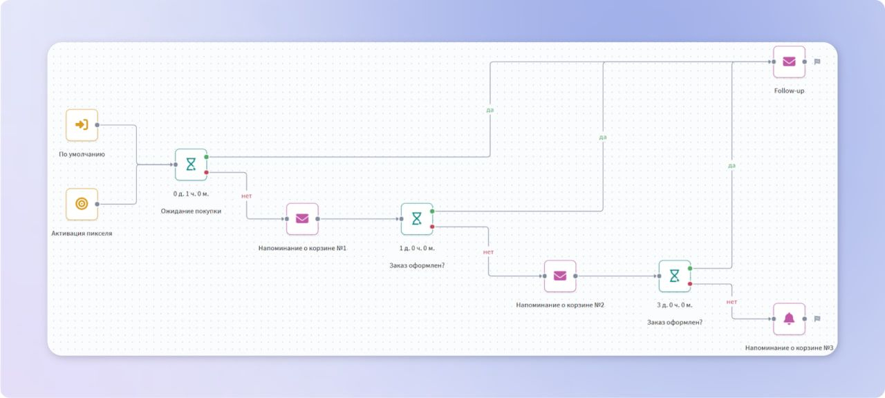 Допустим, пользователь положил товар в корзину, и вы хотите отправить ему напоминание. В шаблоне достаточно указать переменные, после чего настроить сценарий или триггерную кампанию на запуск при активации пикселя. Платформа сама подставит нужные данные из события.